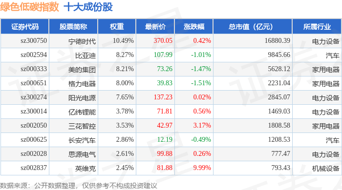 绿色低碳(399258)指数十大成份股详情如下:
