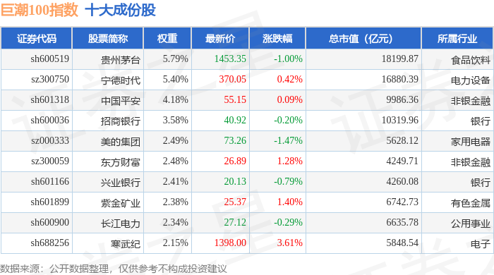 巨潮100(399313)指数十大成份股详情如下: