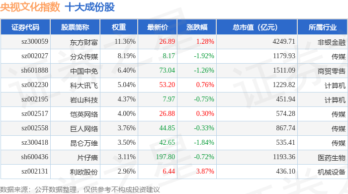 资金流向方面,央视文化(399557)指数成份股当日主力资金净流出合计27.18亿元,游资资金净流入合计1.44亿元,散户资金净流入合计25.73亿元。成份股资金流向详情见下表: