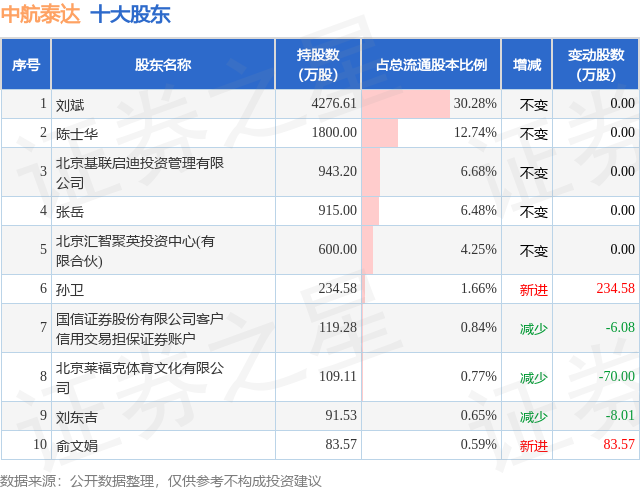 根据中航泰达2025年中报公布的十大股东详情如下: