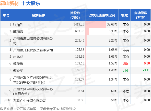 根据鹿山新材2025年中报公布的十大股东详情如下: