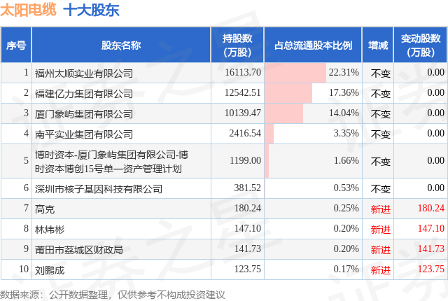 根据太阳电缆2025年中报公布的十大股东详情如下: