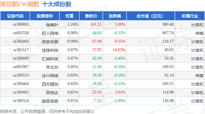 深互联EW(399677)指数十大成份股详情如下: