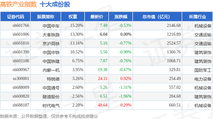 资金流向方面,高铁产业(399807)指数成份股当日主力资金净流出合计4.03亿元,游资资金净流入合计6754.55万元,散户资金净流入合计3.36亿元。成份股资金流向详情见下表: