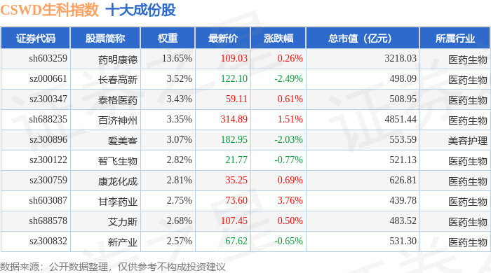 近10日内CSWD生科(399993)指数成份股做了调整,新纳入了2只股票。