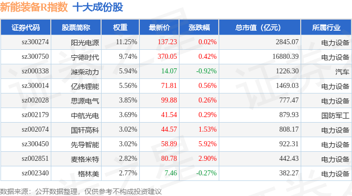 资金流向方面,新能装备R(470043)指数成份股当日主力资金净流出合计26.15亿元,游资资金净流入合计4.12亿元,散户资金净流入合计22.03亿元。成份股资金流向详情见下表: