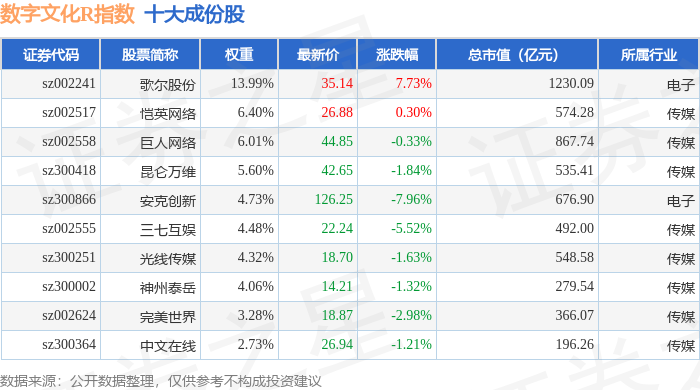 资金流向方面,数字文化R(470047)指数成份股当日主力资金净流出合计17.24亿元,游资资金净流出合计4.07亿元,散户资金净流入合计21.31亿元。成份股资金流向详情见下表:
