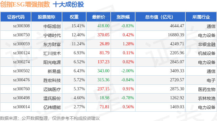 资金流向方面,创指ESG增强(970034)指数成份股当日主力资金净流出合计56.98亿元,游资资金净流入合计13.85亿元,散户资金净流入合计43.13亿元。成份股资金流向详情见下表: