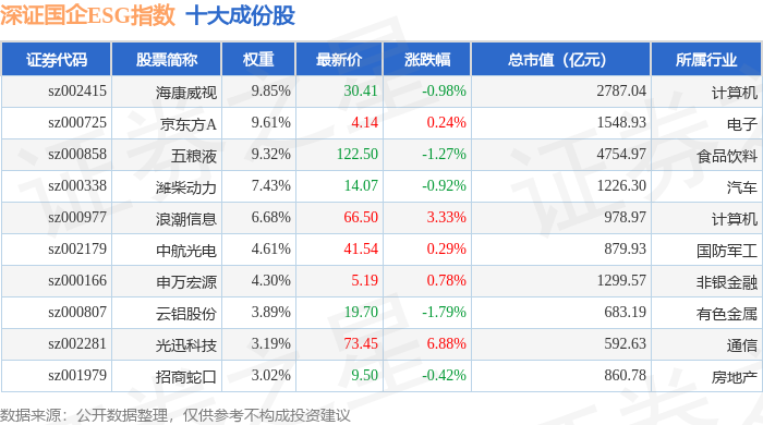 证券之星消息,9月22日,深证国企ESG(970055)指数报收于1387.24点,涨0.02%,成交394.61亿元,换手率1.48%。当日该指数成份股中,上涨的有19家,冠捷科技以10.04%的涨幅领涨,下跌的有30家,首钢股份以8.73%的跌幅领跌。