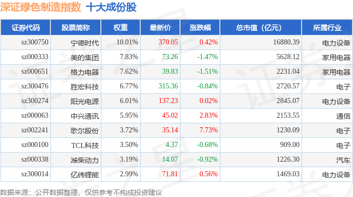 证券之星消息,9月22日,深证绿色制造(970069)指数报收于1842.47点,涨0.81%,成交1238.83亿元,换手率2.53%。当日该指数成份股中,上涨的有22家,鹏鼎控股以10.0%的涨幅领涨,下跌的有28家,锦浪科技以5.06%的跌幅领跌。