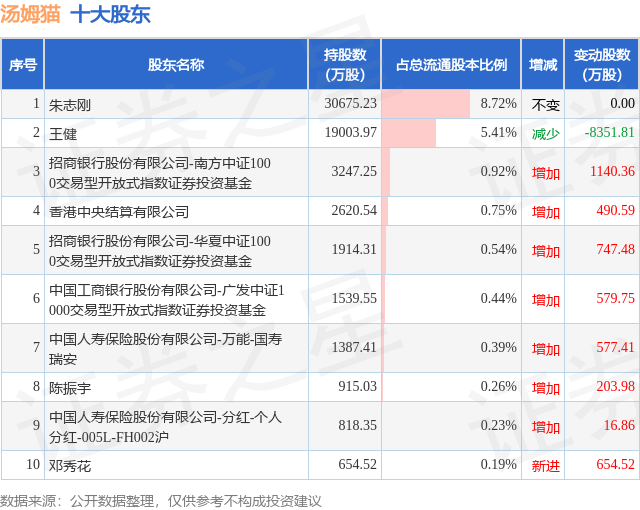 根据汤姆猫2025年中报公布的十大股东详情如下: