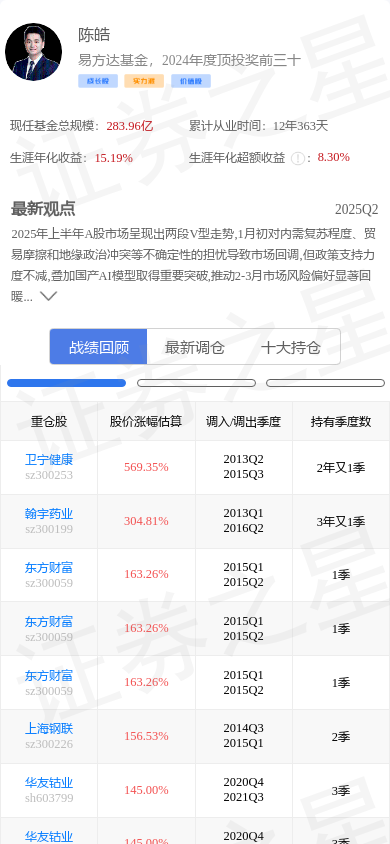 中国联通(00762)是基金大佬陈皓的重仓股。,其在整个职业生涯内年化收益高达15.19%。陈皓的大佬持仓 - 战绩回顾截图如下: