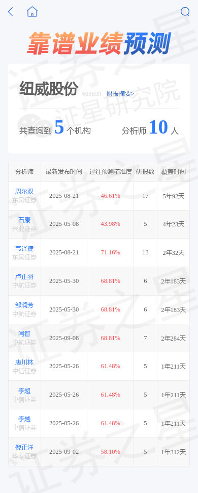 可在证星研究院详细查看万民远战绩和分析师对基金持仓的增减仓公司的业绩预测。(更多特色估值数据尽在证星研究院)
