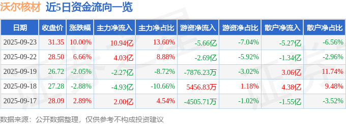 9月23日的资金流向数据方面,主力资金净流入10.94亿元,占总成交额13.6%,游资资金净流出5.66亿元,占总成交额7.04%,散户资金净流出5.27亿元,占总成交额6.56%。