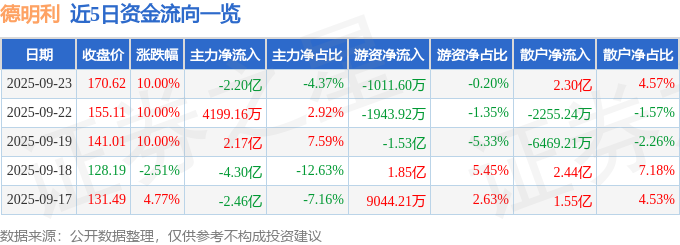 证券之星消息,德明利9月23日涨停收盘,收盘价170.62元。该股于14点28分涨停,6次打开涨停,截止收盘封单资金为9322.81万元,占其流通市值0.34%。