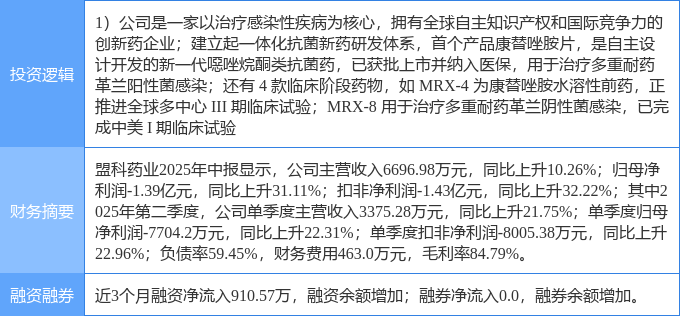 证券之星消息,盟科药业9月23日涨停收盘,收盘价9.71元。该股于10点43分涨停,4次打开涨停,截止收盘封单资金为67.28万元,占其流通市值0.01%。