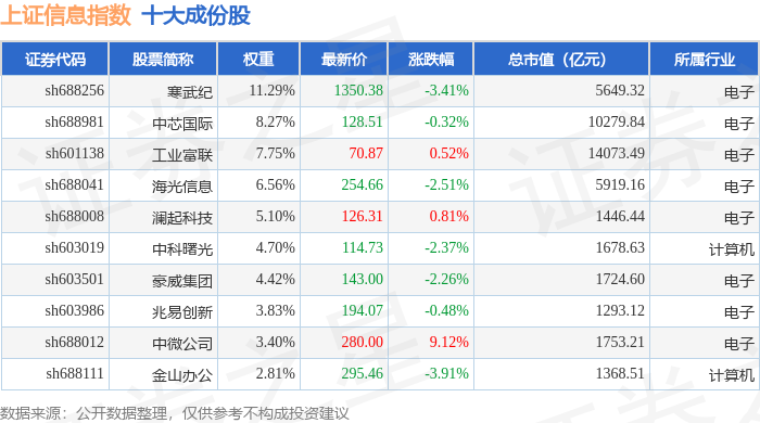 证券之星消息,9月23日,上证信息(000039)指数报收于5775.62点,跌0.6%,成交1834.35亿元,换手率2.79%。当日该指数成份股中,上涨的有15家,沪硅产业以11.54%的涨幅领涨,下跌的有34家,用友网络以5.29%的跌幅领跌。