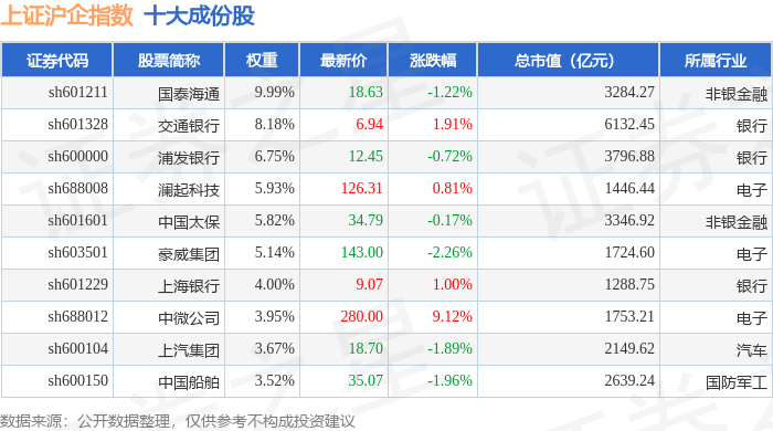 上证沪企(000062)指数十大成份股详情如下: