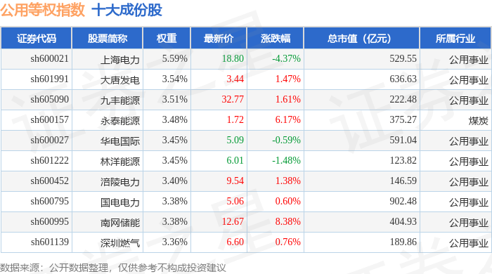 公用等权(000079)指数十大成份股详情如下:
