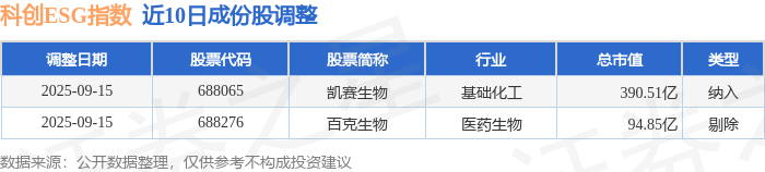 近10日内科创ESG(000691)指数成份股做了调整,新纳入了1只股票,剔除了1只股票。