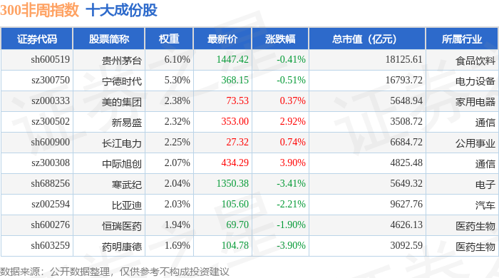 300非周(000969)指数十大成份股详情如下: