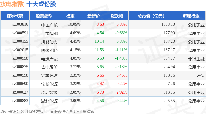 资金流向方面,水电指数(399234)成份股当日主力资金净流出合计2.77亿元,游资资金净流入合计6834.17万元,散户资金净流入合计2.08亿元。成份股资金流向详情见下表: