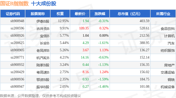 国证B指(399318)指数十大成份股详情如下: