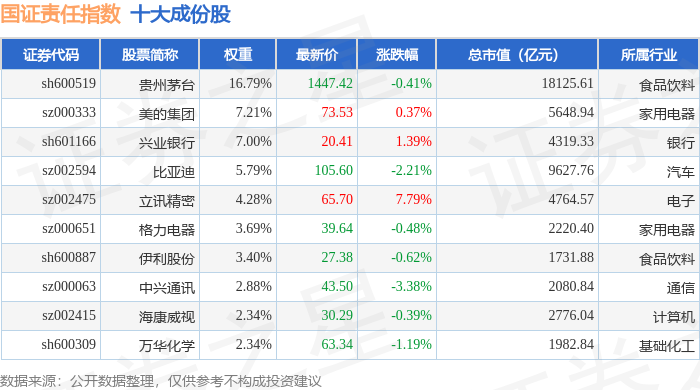 证券之星消息,9月23日,国证责任(399369)指数报收于1529.99点,跌0.18%,成交1243.03亿元,换手率1.03%。当日该指数成份股中,上涨的有27家,立讯精密以7.79%的涨幅领涨,下跌的有70家,玉禾田以6.35%的跌幅领跌。