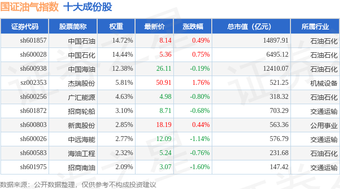 资金流向方面,国证油气(399439)指数成份股当日主力资金净流出合计6.34亿元,游资资金净流入合计9791.43万元,散户资金净流入合计5.37亿元。成份股资金流向详情见下表: