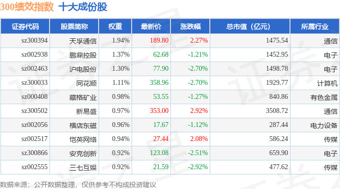资金流向方面,300绩效(399657)指数成份股当日主力资金净流出合计300.68亿元,游资资金净流入合计71.19亿元,散户资金净流入合计229.49亿元。成份股资金流向详情见下表: