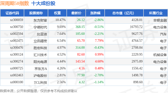 资金流向方面,深周期50(399670)指数成份股当日主力资金净流出合计106.04亿元,游资资金净流入合计27.75亿元,散户资金净流入合计78.29亿元。成份股资金流向详情见下表: