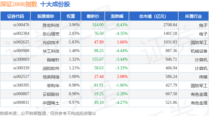 资金流向方面,深证200R(399679)指数成份股当日主力资金净流出合计156.44亿元,游资资金净流入合计37.95亿元,散户资金净流入合计118.48亿元。成份股资金流向详情见下表: