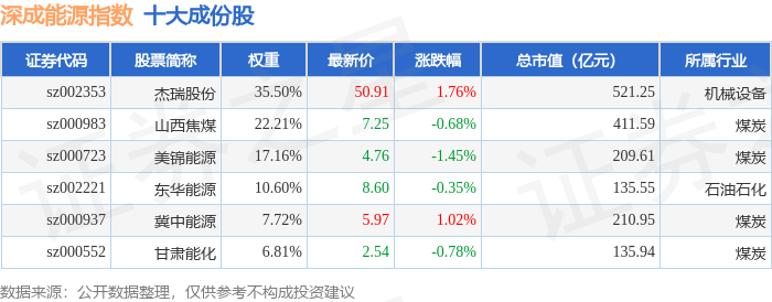 深成能源(399680)指数十大成份股详情如下:
