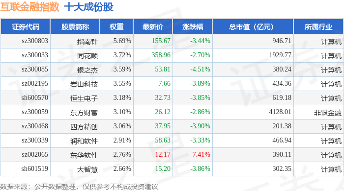 资金流向方面,互联金融(399805)指数成份股当日主力资金净流出合计84.2亿元,游资资金净流入合计16.01亿元,散户资金净流入合计68.19亿元。成份股资金流向详情见下表: