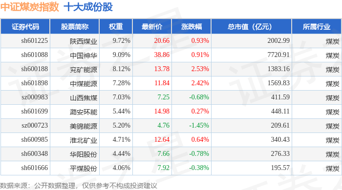 资金流向方面,中证煤炭(399998)指数成份股当日主力资金净流出合计8356.74万元,游资资金净流出合计1.69亿元,散户资金净流入合计2.53亿元。成份股资金流向详情见下表: