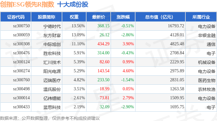 创指ESG领先R(470031)指数十大成份股详情如下: