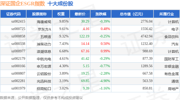 深证国企ESGR(470055)指数十大成份股详情如下: