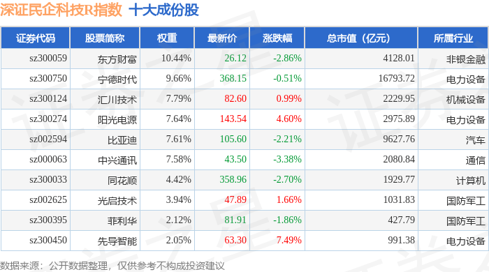 深证民企科技R(470059)指数十大成份股详情如下: