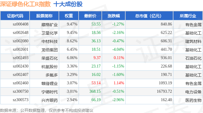 深证绿色化工R(470076)指数十大成份股详情如下: