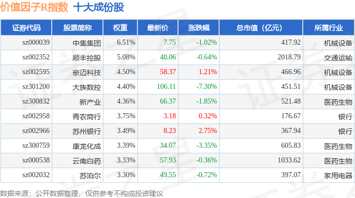 资金流向方面,价值因子R(480056)指数成份股当日主力资金净流出合计16.29亿元,游资资金净流入合计1.44亿元,散户资金净流入合计14.85亿元。成份股资金流向详情见下表:
