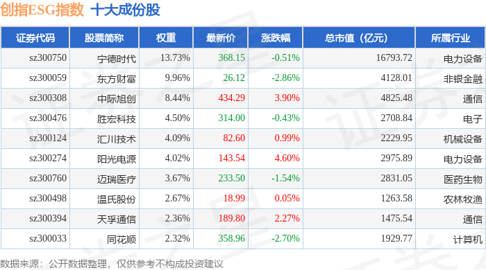 资金流向方面,创指ESG(970028)指数成份股当日主力资金净流出合计81.32亿元,游资资金净流入合计24.81亿元,散户资金净流入合计56.52亿元。成份股资金流向详情见下表: