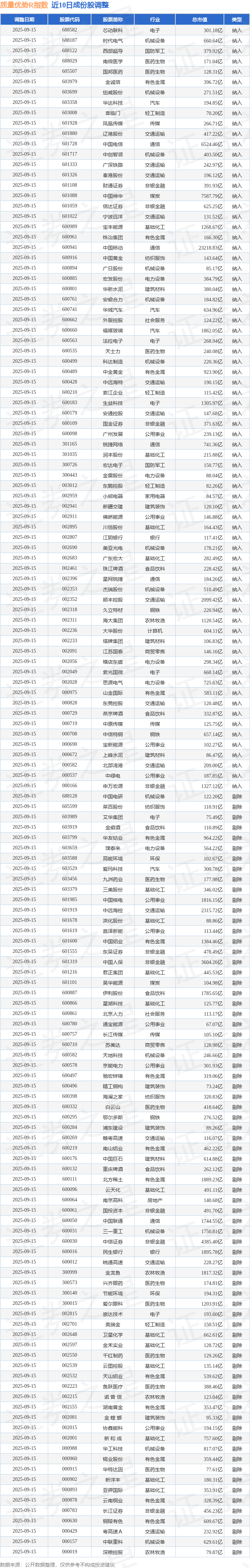 近10日内质量优势R(489017)指数成份股做了调整,新纳入了74只股票,剔除了74只股票。