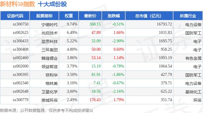 资金流向方面,新材料50(970042)指数成份股当日主力资金净流出合计31.87亿元,游资资金净流入合计13.43亿元,散户资金净流入合计18.44亿元。成份股资金流向详情见下表: