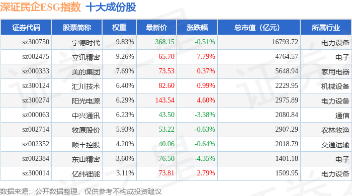 深证民企ESG(970056)指数十大成份股详情如下: