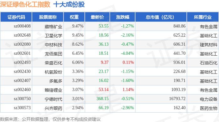 证券之星消息,9月23日,深证绿色化工(970076)指数报收于1515.18点,跌1.16%,成交513.41亿元,换手率2.8%。当日该指数成份股中,上涨的有9家,沃尔核材以10.0%的涨幅领涨,下跌的有41家,高争民爆以5.69%的跌幅领跌。