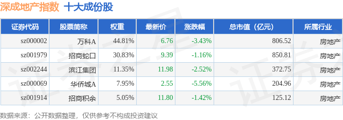 证券之星消息,9月23日,深成地产(971001)指数报收于507.09点,跌2.73%,成交31.64亿元,换手率2.12%。当日该指数成份股中,下跌的有5家,华侨城A以5.56%的跌幅领跌。