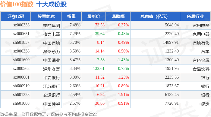 证券之星消息,9月23日,价值100(980081)指数报收于4081.04点,涨0.09%,成交578.28亿元,换手率0.74%。当日该指数成份股中,上涨的有43家,上海建工以7.69%的涨幅领涨,下跌的有57家,同力股份以4.0%的跌幅领跌。