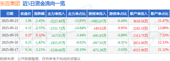 证券之星消息,截至2025年9月23日收盘,东百集团(600693)报收于5.96元,下跌2.45%,换手率3.25%,成交量28.21万手,成交额1.68亿元。