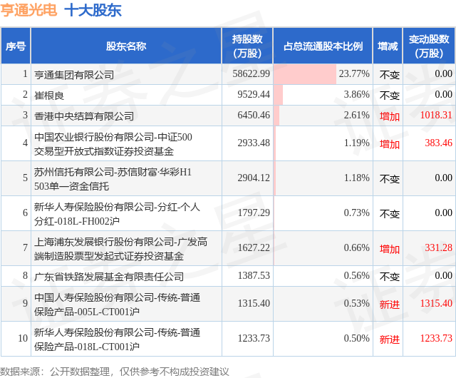 根据亨通光电2025年中报公布的十大股东详情如下: