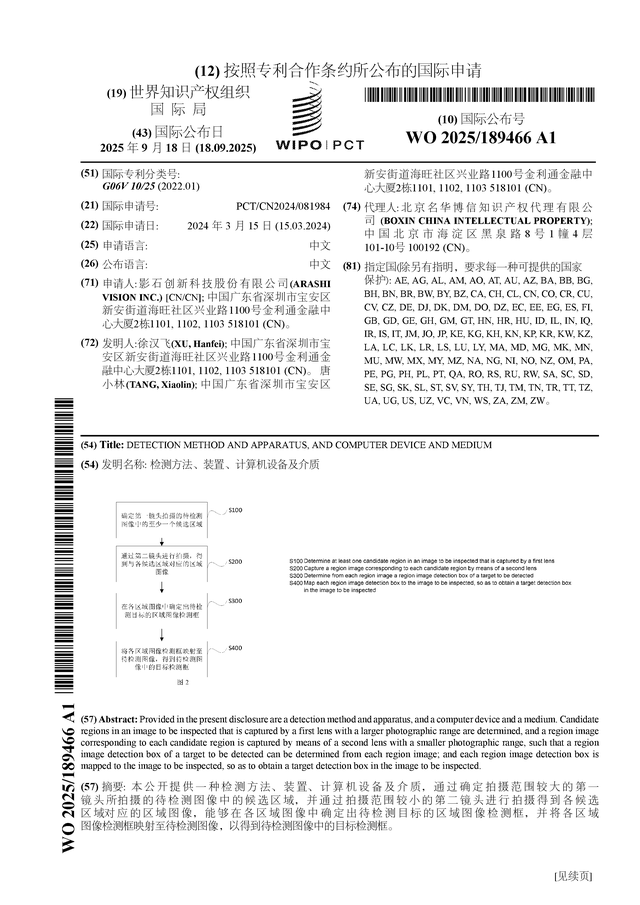 证券之星消息,根据企查查数据显示影石创新(688775)公布了一项国际专利申请,专利名为“检测方法、装置、计算机设备及介质”,专利申请号为PCT/CN2024/081984,国际公布日为2025年9月18日。